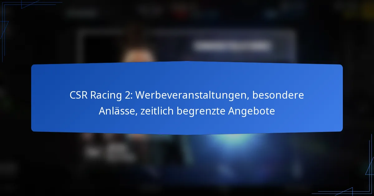 Spieler können effektiv mit Werbeaktionen in CSR Racing 2 interagieren, indem sie aktiv an zeitlich begrenzten Veranstaltungen teilnehmen und die besonderen Anlässe nutzen. Das Verständnis der Mechaniken dieser Aktionen ist entscheidend, um Belohnungen zu maximieren und das Spielerlebnis zu verbessern.